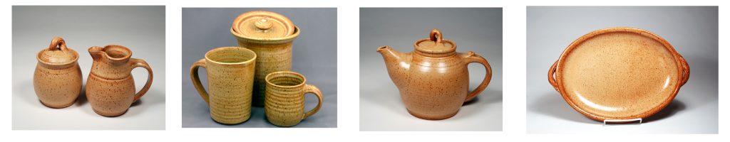 Pieces are rounded in shape, with comfortable handles and knobs. This is pottery that fits easily into both traditional and modern homes.